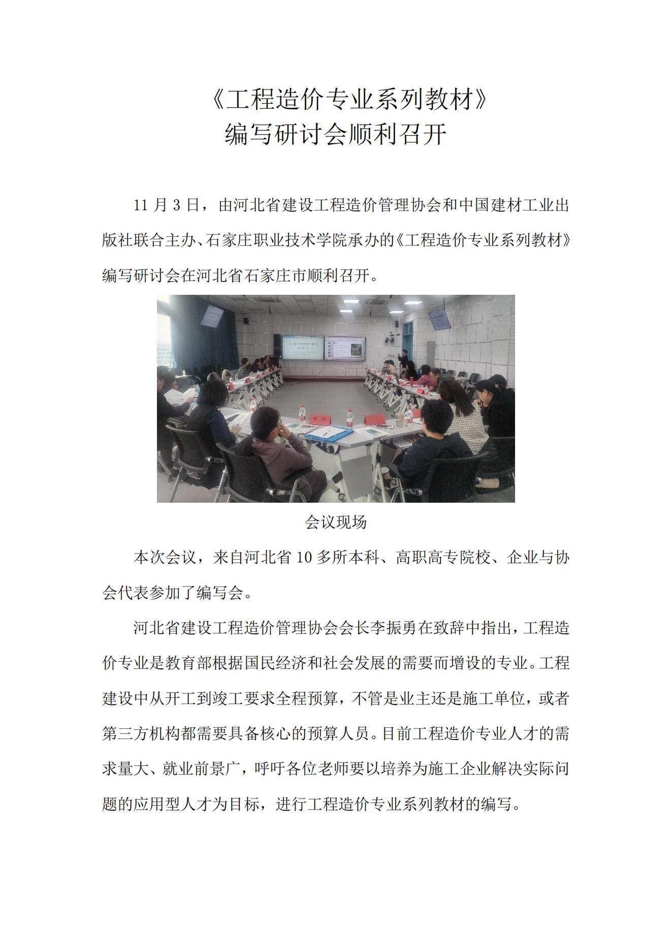 《工程造价专业系列教材》 编写研讨会顺利召开