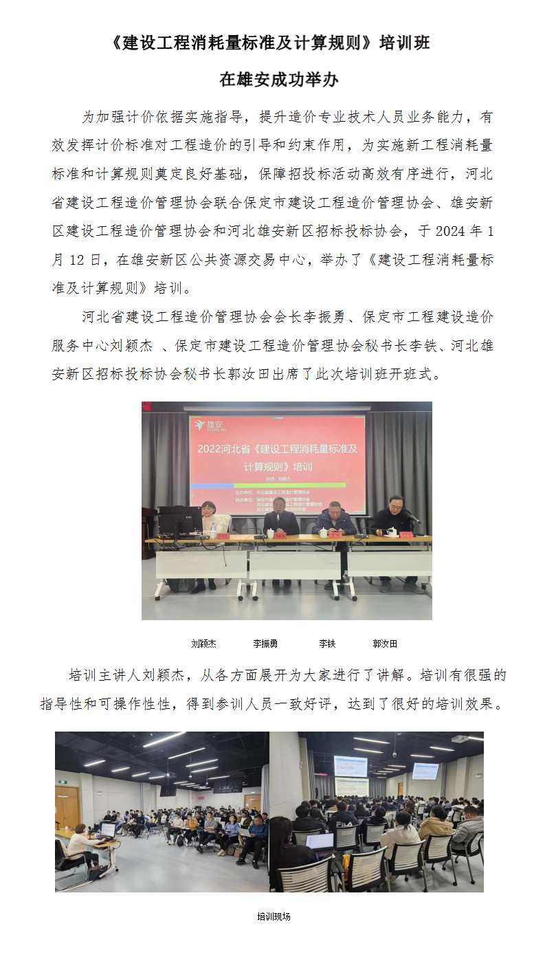 《建设工程消耗量标准及计算规则》培训班在雄安成功举办