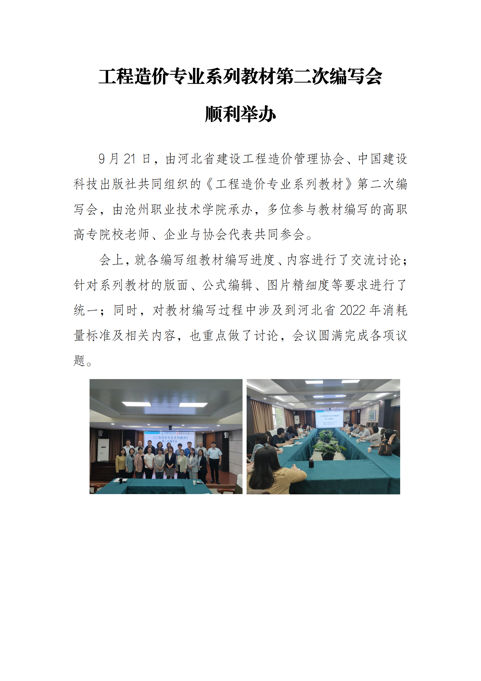 工程造价专业系列教材第二次编写会 顺利举办